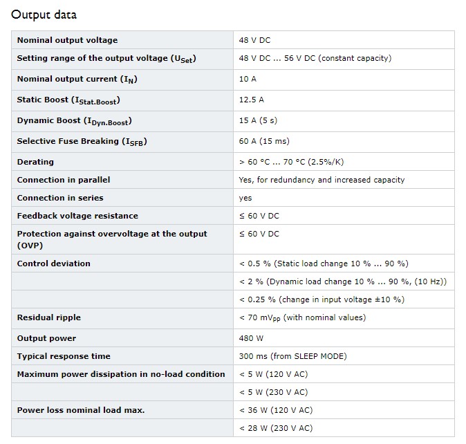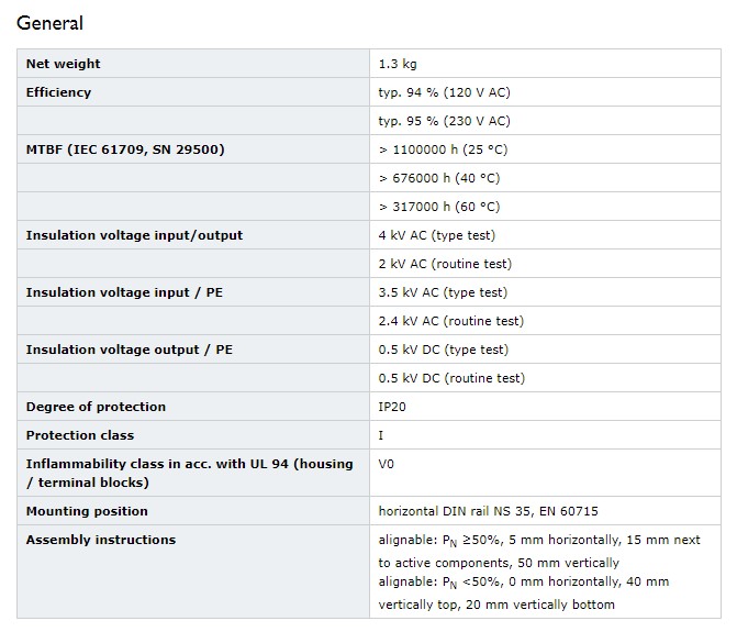 BỘ NGUỒN QUINT 1PHA 10A - 2904611 - QUINT4-PS/1AC/48DC/10 POWER SUPPLY - PHOENIX CONTACT. NHÀ PHÂN PHỐI PHOENIX CONTACT VIỆT NAM.. MADE IN THAILAND Nhà phân phối Phoenix Contact Hồ Chí Minh, Việt Nam. Bộ nguồn Quint đầu vào 1 pha AC, đầu ra 48VDC/10A, mã hàng 2904611 - QUINT4-PS/1AC/48DC/10, vỏ kim loại, gắn được trên thanh DIN rail. Dải điện áp đầu ra có thể điều chỉnh được từ 48VDC đến 56VDC, bộ nguồn Quint thế hệ thứ 4 với công nghệ power boost cho phép ổn định dòng ra cực chính xác. SẢN XUẤT TẠI THÁI LAN. Tham khảo catalog chi tiết theo đường link sau ( trích nguồn https://www.phoenixcontact.com) https://www.phoenixcontact.com SƠ LƯỢC NGUỒN QUINT ( ENGLISH): The fourth generation of the high-performance QUINT POWER power supplies ensures superior system availability by means of new functions. Signaling thresholds and characteristic curves can be individually adjusted via the NFC interface. The unique SFB technology and preventive function monitoring of the QUINT POWER power supply increase the availability of your application. Your advantages Preventive function monitoring indicates critical operating states before errors occur Signaling thresholds and characteristic curves that can be adjusted via NFC maximize system availability Power reserve for easy system extension thanks to static boost with sustained power of up to 125% and ability to start difficult loads thanks to dynamic boost with up to 200% for 5 seconds High degree of immunity, thanks to integrated gas-filled surge arrester and mains failure bridging time of more than 20 milliseconds Robust design thanks to metal housing and wide temperature range from -40°C to +70°C Worldwide use thanks to the wide range input and international approval package ---------------------------------------------------------------------------------------------------------------------------------------------------------------------- SƠ LƯỢC THÔNG TIN KỸ THUẬT BỘ NGUỒN 2904611 - QUINT4-PS/1AC/48DC/10 Primary-switched QUINT POWER power supply for DIN rail mounting with free choice of output characteristic curve and SFB (Selective Fuse Breaking) technology, input: 1-phase, output: 48 V DC / 10 A Block Diagram: Liên hệ để có giá tốt nhất: Mr Vũ: 0908 878 633 Mr Hoàng: 0933 441 466 Mr Di: 0933 744 776 Email: info@tienhungtech.com sales@tienhungtech.com 2904611 - QUINT4-PS/1AC/48DC/10 - BỘ NGUỒN 2904611 - QUINT4-PS/1AC/48DC/10 PHOENIX CONTACT